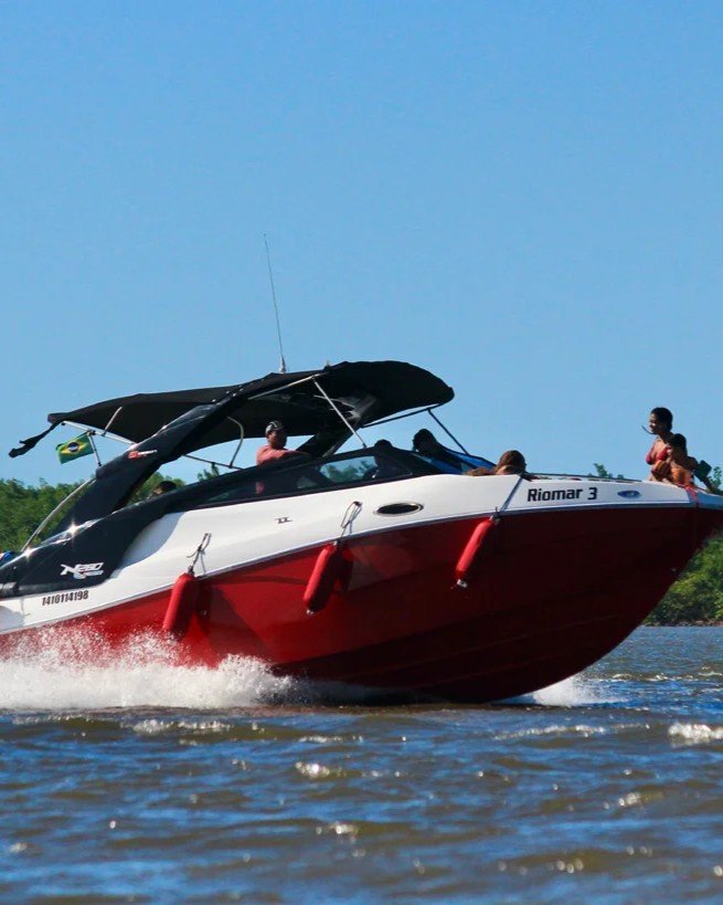 Board our speedboat at the Beira Rio port as we navigate the Preguiças River toward our first stop: Vassouras (Pequenos Lençóis). Enjoy free time to observe the capuchin monkeys that inhabit the mangroves next to the beach (Please do not feed the monkeys). We will continue along the river, passing the fishing villages of Espadarte, Morro do Boi, and Moitas on the right bank, surrounded by the beautiful dunes and beaches of the Pequenos Lençóis. Our next destination is the village of Mandacaru, home to the Preguiças Lighthouse. We will climb the lighthouse for a privileged panoramic view of the dunes, the river, its mouth, the ocean, and the local vegetation. After the lighthouse visit, the boat proceeds to Atins Beach for a lunch break (lunch not included). Free time to enjoy the beach.