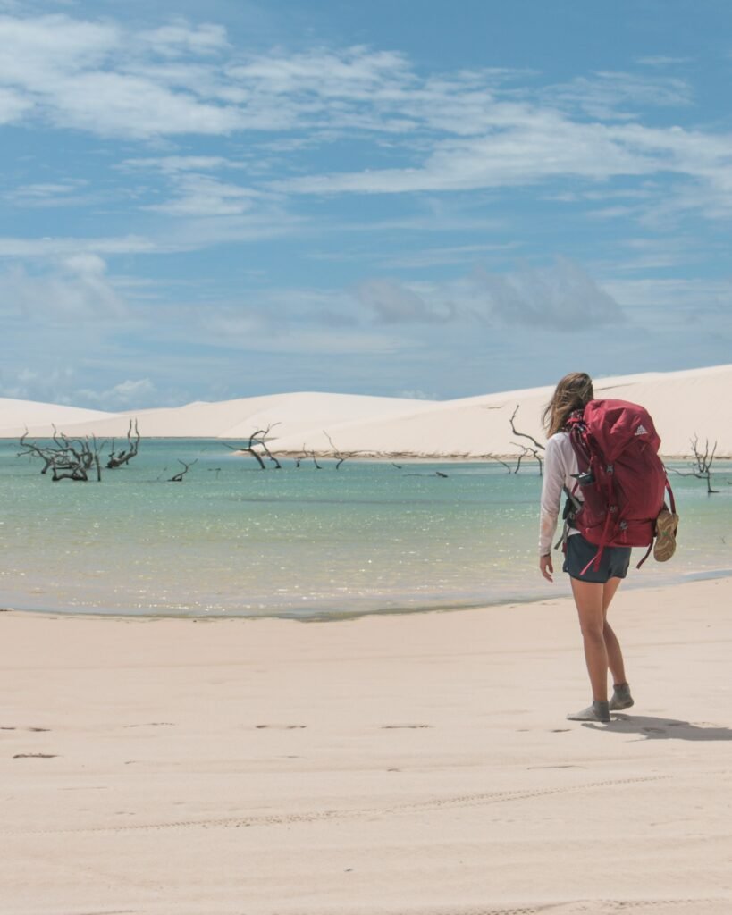 A trekking expedition from Lagoa Azul toward Lagoa Bonita, passing through Baixa da Onça. We depart from Barreirinhas toward the Lagoa Azul Circuit, where we disembark to begin the first stage of our trek to Baixa da Onça (Lagoa da Prata). This stretch is approximately 8km (a 2.5-hour hike), followed by an optional stop for lunch (not included) at a local restaurant. After resting, we continue at 3:00 PM toward Lagoa Bonita—another 8km stretch (2.5-hour hike). Throughout the entire trekking experience, we will stop for swims in the best lagoons along this path of stunning, secluded waters.