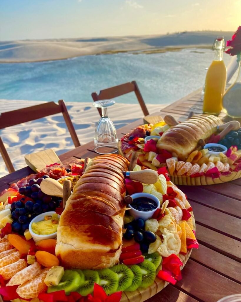 This tour is recommended for a deep immersion in the National Park. We depart from the inn a bit later to arrive at the lagoons when the sun is milder. After a short walk to our chosen spot and watching the sunset, a beautiful platter of cold cuts and local products will be served overlooking the Lençóis Maranhenses lagoons. Around 7:00 PM, the stars and galaxies become visible to the naked eye.