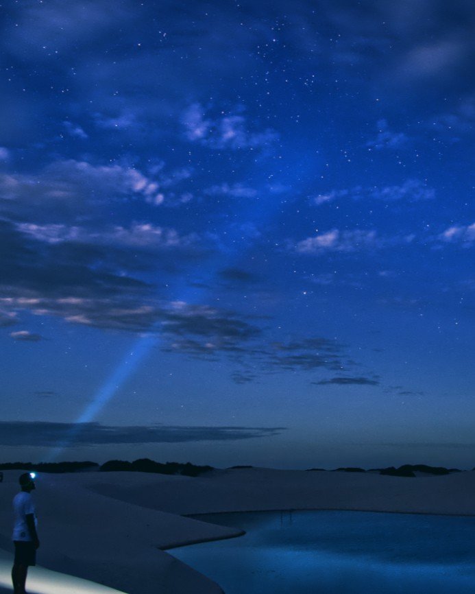 This tour is recommended for a deep immersion in the National Park, visiting at a time when you will have the park almost entirely to yourself. Upon arrival, we can view the stars and galaxies with the naked eye, followed by watching the sunrise in front of the Lagoa Azul Circuit lagoons. Once we reach our chosen spot, we will enjoy breakfast overlooking the lagoons of Lençóis Maranhenses. Free time for sunbathing and swimming in the lagoons.