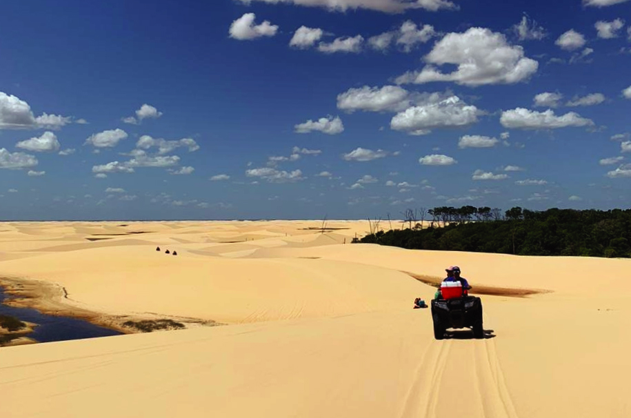 The route takes us across majestic dunes and past lagoon formations with stops for swimming. We will also ride along the sands of Caburé Beach until we reach the local restaurants, where you will have free time for lunch (not included) and to enjoy the surroundings. After a period of rest, we head back to Barreirinhas.