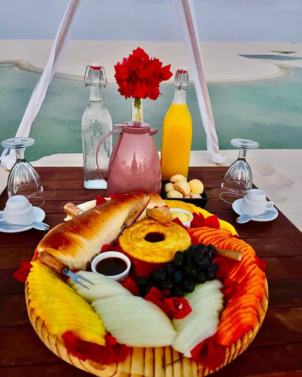 This tour is recommended for a deep immersion in the National Park, visiting at a time when you will have the park almost entirely to yourself. Upon arrival, we can view the stars and galaxies with the naked eye, followed by watching the sunrise in front of the Lagoa Azul Circuit lagoons. Once we reach our chosen spot, we will enjoy breakfast overlooking the lagoons of Lençóis Maranhenses. Free time for sunbathing and swimming in the lagoons.